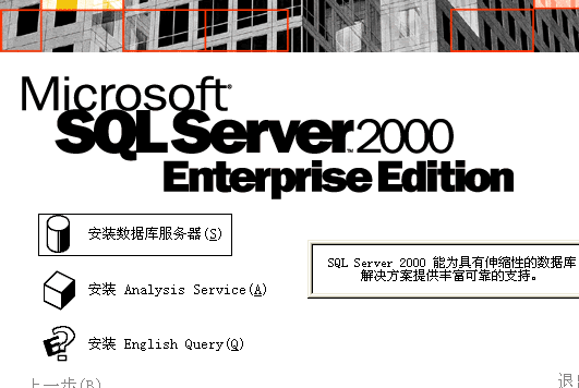 1)运行Microsoft SQL Server 2000光盘,选择安装SQL server 2000组件-->选择安装数据库服务器