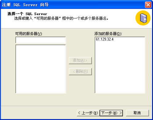 4。在可用的服务器处输入我们提供的服务器IP,再点添加,再点下一步